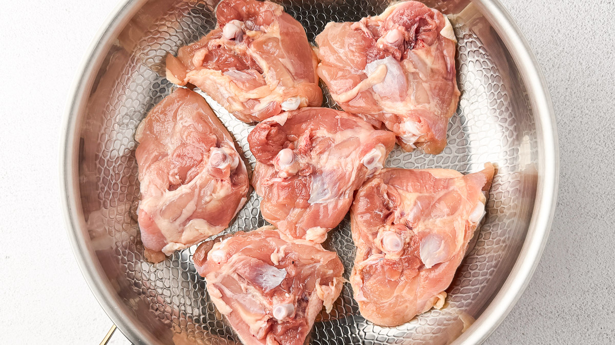 1. Place the Chicken: Put the thighs skin-side down in a cold, dry skillet.