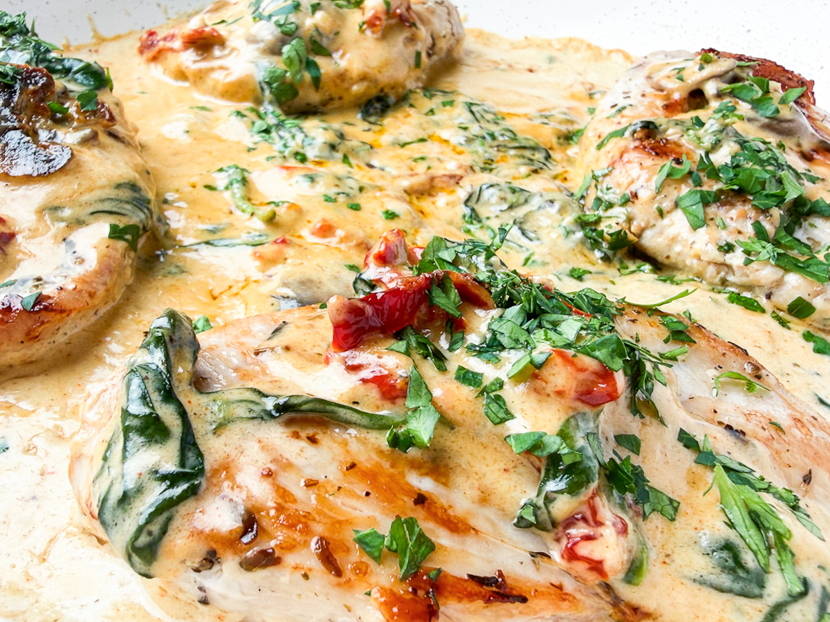 • Finish the chicken: Return the chicken to the skillet, spoon sauce over the top, and simmer for a few minutes or until the chicken is fully cooked and coated in the creamy Tuscan sauce. Add chopped parsley if desired.