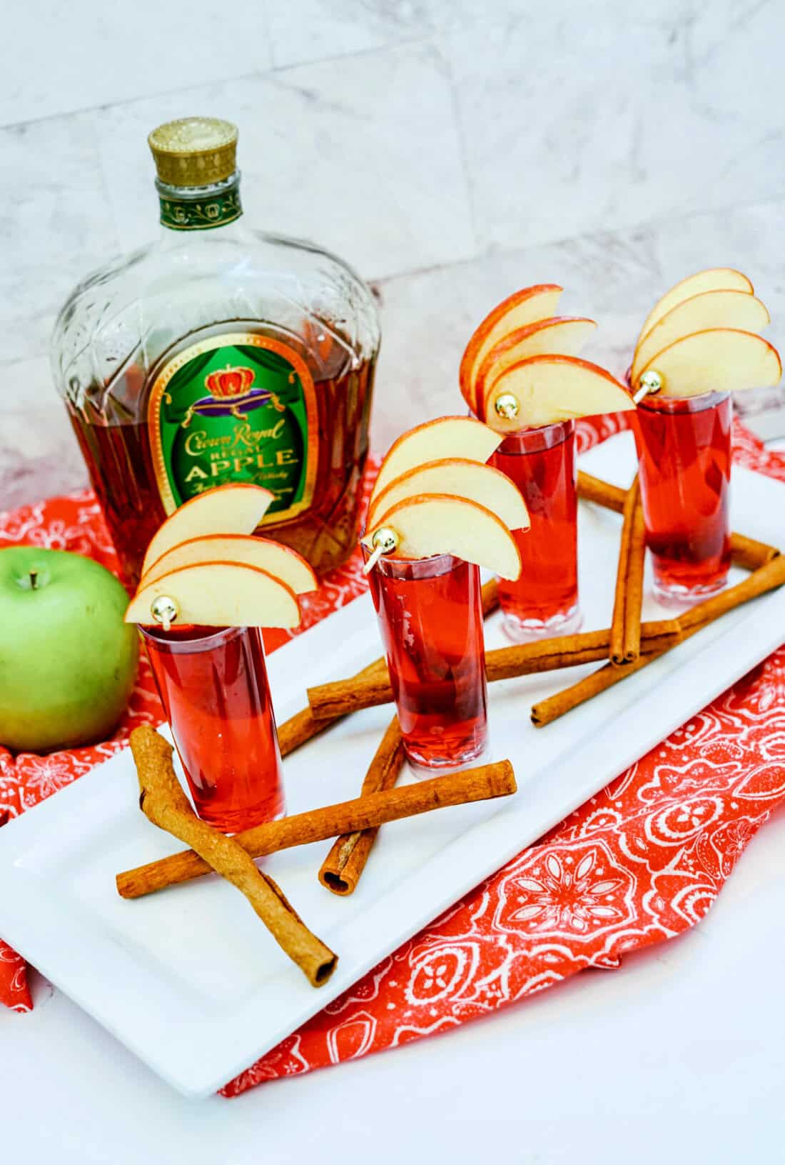 - Fill a shot glass half way with Crown Royal Apple.