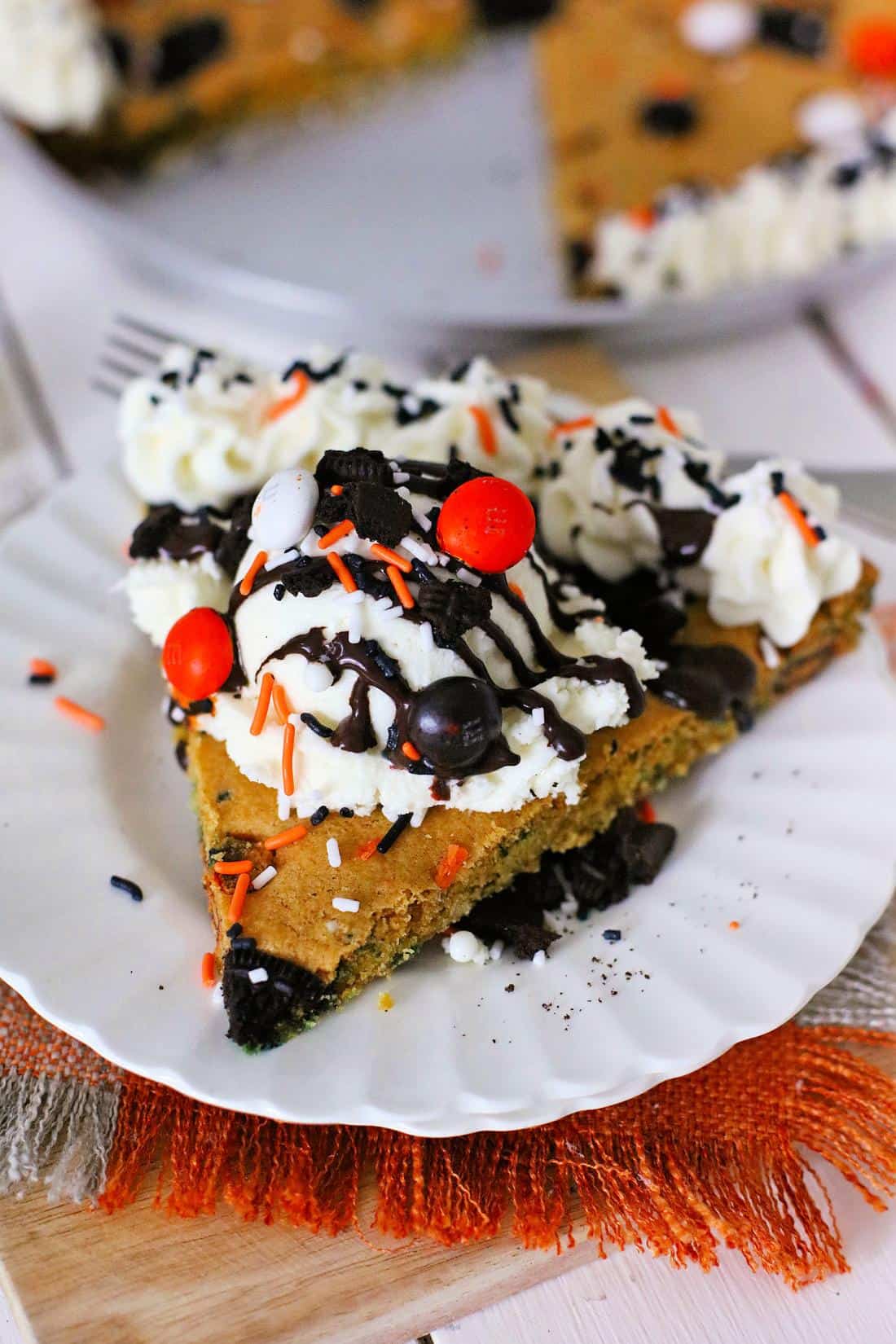 This massive Halloween M&M Cookie Cake is sure to meet all of your requirements.