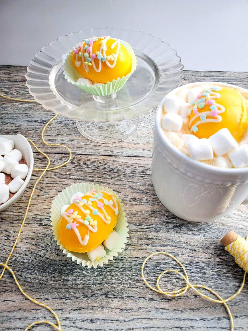 In about 1 hour, you’ll have yellow Easter egg hot cocoa bombs that look ready to enjoy!