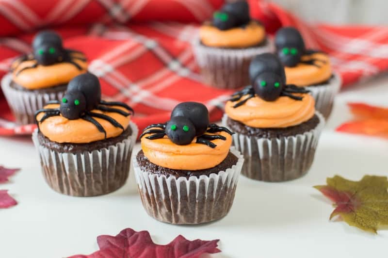 Using Wilton tip #5 , frost out 4 legs on each side of each spider with the black decorating frosting. Serve and enjoy!